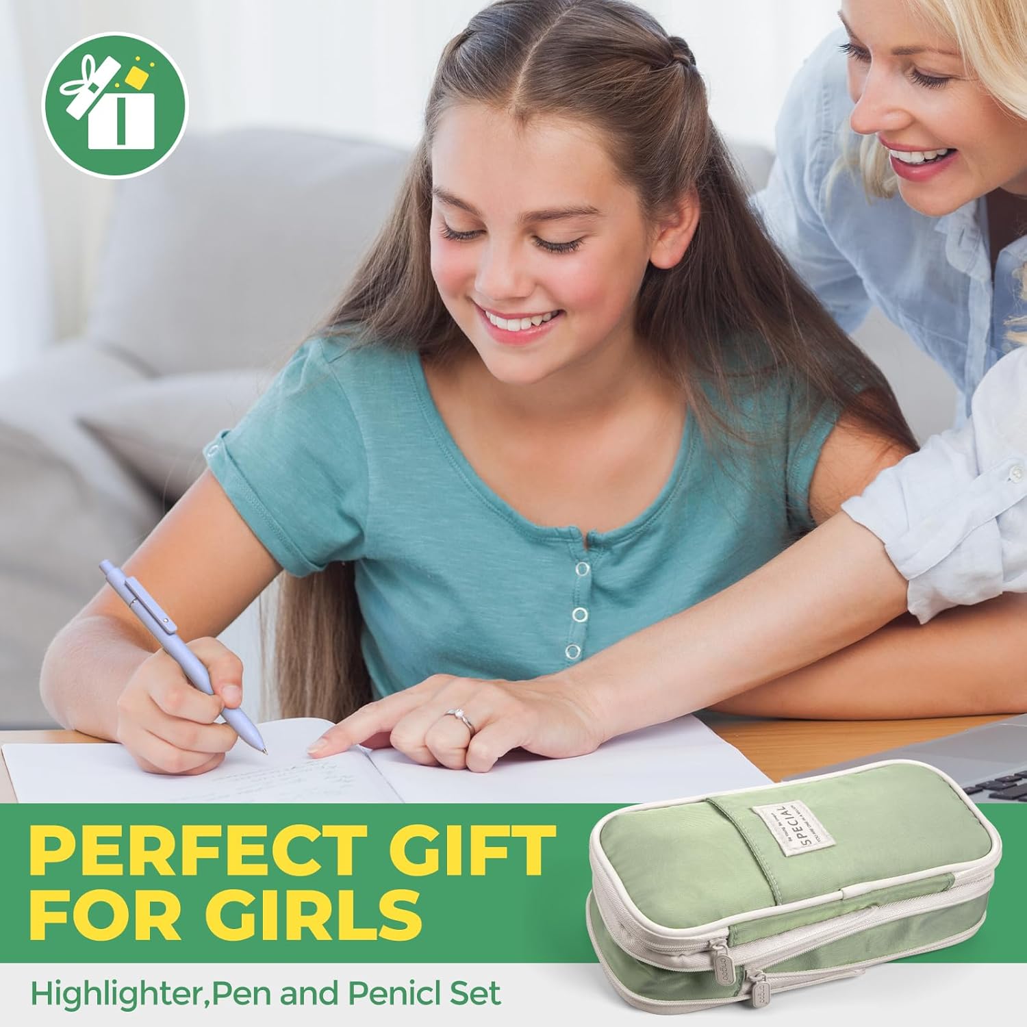Nicpro 39 PCS Aesthetic School Supplies with Big Capacity Pen Case, 12 Color Pastel Highlighters, 5 Quick Dry Retractable Black Ink Pens, 6 Pastel Mechanical Pencil 0.5 & 0.7 mm for Student Stationary