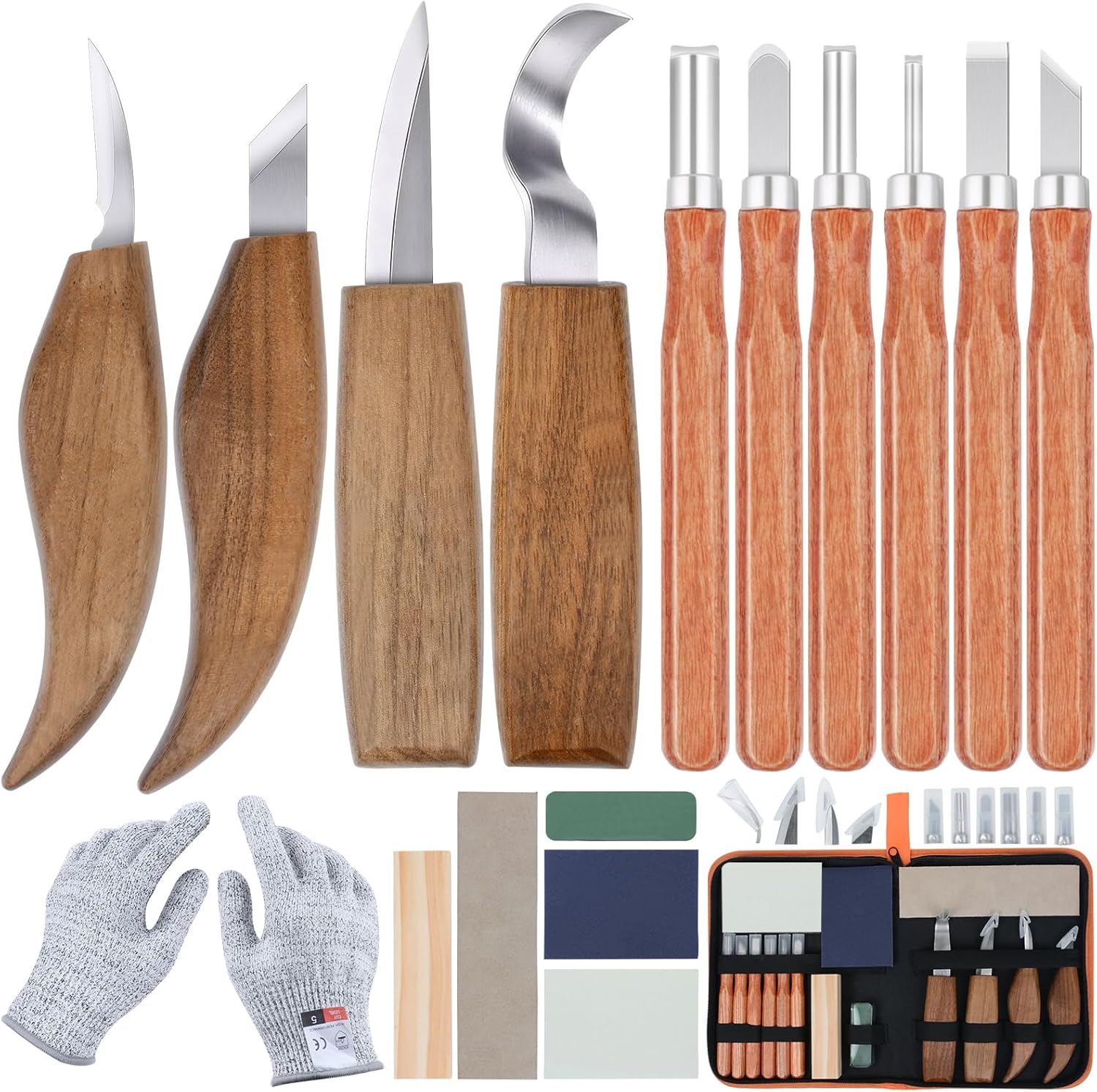 Ninonly 17Pcs Wood Carving Tools Kit – Beginner’s Wood Whittling Set with 6Pcs Carbon Steel Knife, Gloves, Knife Sharpener for Spoon, Bowl, Kuksa Cup