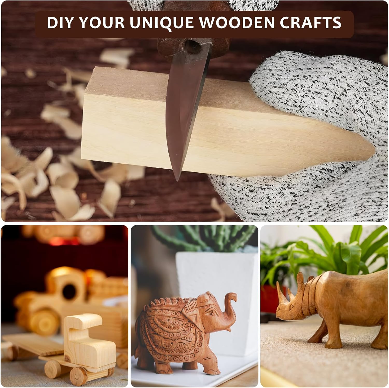 Introducing the Ninonly 17Pcs Wood Carving Tools Kit – the ultimate set for beginners looking to explore the art of wood whittling. This comprehensive kit includes 6Pcs high-quality carbon steel knives, gloves for added safety, and a knife sharpener to keep your tools in top condition.